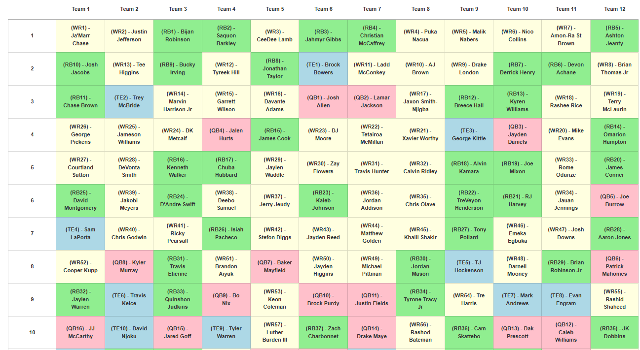 Below, I’ve put together my current strategy for the 12 slot, as I view it as one of the best, and most fun, slots to currently draft out of.