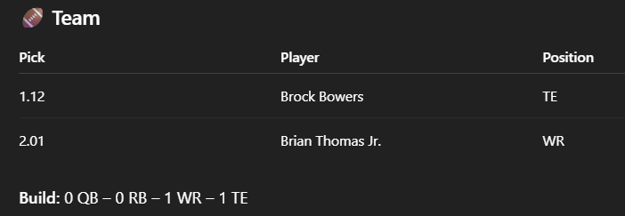Since this is envisioning an ideal world, let’s select Brian Thomas Jr, as there’s a clear running back I want at 3.12.